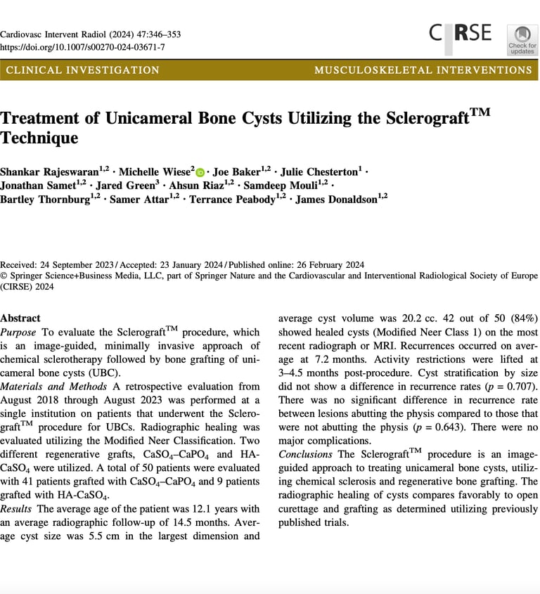 The Sclerograft procedure is a minimally invasive outpatient procedure using to treat bone cysts.